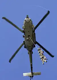 The United States Coast Guard uses a similar technique to board ships when speed and stealth are required.