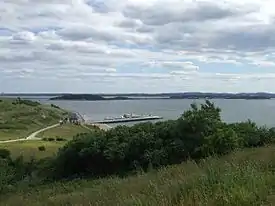 Spectacle Island is a 114-acre island in Boston Harbor,[1] 4 miles (6.4 km) offshore of downtown Boston, Massachusetts. It is part of the city of Boston. The island has a varied history, and today is a public park with a marina, visitor center, cafe, lifeguarded swimming beach, and five miles of walking trails,[1] forming part of the Boston Harbor Islands National Recreation Area. It is served all year by ferries from Boston, and on weekends and summer weekdays by a shuttle boat to and from nearby islands.[2][3]
