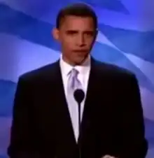 The keynote address at the 2004 Democratic National Convention (DNC) was given by then Illinois State Senator, United States Senate candidate, and future President Barack Obama on the night of Tuesday, July 27, 2004. His unexpected landslide victory in the March 2004 Illinois U.S. Senate Democratic primary had made him overnight a rising star within the national Democratic Party, started speculation about a presidential future, and led to the reissue of his memoir, Dreams from My Father.[2] His convention keynote address was well received, which further elevated his status within the Democratic Party and led to his reissued memoir becoming a bestseller.[3]