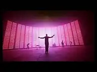 The video promo for "Speed of Sound" was shot on a Los Angeles sound stage on 22 and 23 April 2005.[37] Shooting took place on large sets backed by large Light-emitting diode (LED) displays developed by Element Labs.[38] The performance-based video was directed by Mark Romanek.[39][40] The video features the band performing in front of a curved ellipse wall that consists of 640 Element Labs' VersaTubes placed on 6-inch (150 mm) centres.[41]