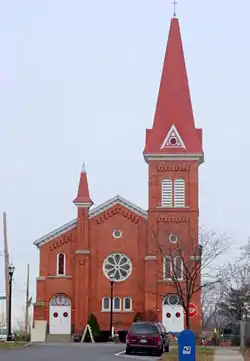 Spencerport Methodist Church, also known as Spencerport United Methodist Church, is a historic Methodist church located at Spencerport in Monroe County, New York, United States. It is a Romanesque style, three- by seven-bay church building constructed of brick on a foundation of Medina sandstone. Initially constructed in 1870–1871, the interior was updated in 1909 to the Akron Plan precepts for church design.[2]