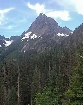 Sperry Peak is a 6,120+ ft (1,870+ m) mountain summit located in the South Fork Stillaguamish River Valley near the western edge of the North Cascades, in Snohomish County of Washington state.[3] It is located 2.5 miles (4.0 km) east of Barlow Pass near the Mountain Loop Highway and the Monte Cristo area, on land managed by the Mount Baker-Snoqualmie National Forest. Its nearest higher peak is Vesper Peak, 0.74 miles (1.19 km) to the west, and between them share a high connecting ridge. The peak was named for A. D. (Dick) Sperry, a Silverton mining prospector during the 1890s.[2] The Dick Sperry Picnic Area is near the historic site of the abandoned Sperry-Iverson mine near Silverton.