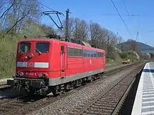 Because the Deutsche Bahn does not push the goods trains of private railway companies for competition reasons, since 2004 the Mittelweserbahn has stationed locomotive number 1020 041 ( ex ÖBB, known as Krokodil) at Laufach for the goods trains of private railways. As a result, an example of Class E93/E94 has returned after a break of many years to banking duties on the Spessart Ramp.