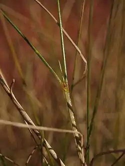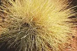 Spinifex resin is a gum coating of some species of spinifex grasses. This sticky resin was traditionally used as an adhesive in tool making by Aboriginal Australians. Many species of spinifex are extremely resinous, to the extent that resin may drip down the stems and leaves on hot days, and large residual lumps of resin often may be seen at the bases of hummocks which have burned.[1]