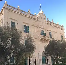 The palace was eventually passed on to Fra Giovanni Battista Spinola, the nephew of the original owner, and he enlarged and embellished it in 1733 under the direction of the architect Romano Fortunato Carapecchia.[7][8] The palace was damaged during the French occupation of Malta in 1798, and the crown on top of the clock on the façade was symbolically destroyed, so as to signify the Order's expulsion from Malta. The palace was restored in 1826, and it was later acquired by the Church.[4] In the 1830s it was used as a residence by Artist Charles Allingham (c.1778-1850).[9]
