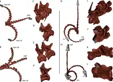 Since Spinophorosaurus is one of the most completely known basal sauropods, it is a good model for biomechanical studies that help to understand sauropod biology and the function of anatomical features. Manipulation of the 3D model by Vidal and colleagues in 2015 showed that each of the frontmost 20 tail vertebrae could deflect up to 20º, and 8–10º in sideways flexion, before limited by the bone morphology. The actual range of movement in a live animal would have been smaller, as the soft tissue as well as the large chevron bones would have been a limiting factor. The first 20 tail vertebrae also became longer towards the end of the tail, as seen in diplodocids, and were powered by enlarged hypaxial musculature, as indicated by the large chevron bones and upwards-angled transverse processes in the first tail vertebrae. Movement in the rear part of the tail was limited as the chevrons were overlapping, as is also the case in dromaeosaurids and ankylosaurids. Together, these features of the tail may have been part of a specialised function, which is unknown.[28] Joger and colleagues argued in 2009 that the supposed spikes formed a thagomiser at the end of the tail that would have been used for defence against predators.[2]