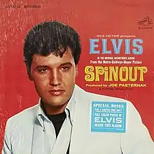 Spinout is the fourteenth soundtrack album by American singer and musician Elvis Presley, released by RCA Victor in mono and stereo, LPM/LSP 3702, on October 31, 1966. It is the soundtrack to the 1966 film of the same name starring Presley. Recording sessions for the film songs took place at Radio Recorders in Hollywood, California, on February 16 and 17, 1966. The album was augmented with three non-film songs recorded earlier in the year. It peaked at number 18 on the Top Pop Albums chart.[2]