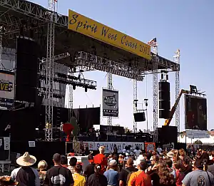 The layout of Spirit West Coast consists of a main stage with large screens for those that have to stand or sit far away. In addition, it features side stages (some inside tents), several merchandise tents, and various other tents (e.g. first aid, lost and found, etc.). There are also numerous food vendors on site.