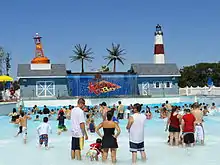 Splish Splash was built in 1989, headed by Chip Cleary with the original owners being the same as the owners of Adventureland.[1] It opened in May 1991 with three body slides, two-speed slides, two kiddie pools, two tube slides, a lazy river, and a restaurant.[3] The park has been owned and operated by Palace Entertainment since 1999.[1] The park currently spans 96 acres (390,000 m2).[4] In 2006, Splish Splash added a new funnel-shaped ride called Alien Invasion. In July 2008, they announced that they would be adding 7 rides over the next few years, including Dr. Von Dark's Tunnel of Terror for 2009, Kahuna Bay for 2011, Bootlegger's Run for 2013, The Battle of Mutiny Bay for 2014, and two new rides introduced in 2018, Riptide Racer and Bombs Away.[5] In 2020, the attraction Battle for Mutiny Bay was removed, as well as opting to stay closed for the 2020 season due to the COVID-19 pandemic. Cliff Diver, an 80-foot tall body slide was removed in 2021.