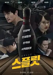 Split (Korean: 스플릿; RR: Suepeullit) is a 2016 South Korean film directed by Choi Kook-hee.[2] It stars Yoo Ji-tae, Lee Jung-hyun, Lee David and Jung Sung-hwa.