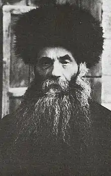A spodik (or spodek; Yiddish: ספּאָדיק spodik, from Polish spodek "saucer") is a tall,[1] black fur hat worn by some Hasidic Jews, particularly by members of sects in 19th-century Congress Poland.[2] The origins of the spodik and the shtreimel are unclear, but it is often thought that the Jews living in Europe adopted wearing fur hats from the Eastern European culture,[1] and perhaps from the nobility,[3] replacing the sudra.