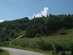 St. Anne's Church in Spodnje Tinsko; behind it, Mother of God Church