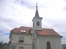 A Neo-Baroque chapel-shrine with a belfry at the crossroads in the centre of the settlement dates to 1860.[3]
