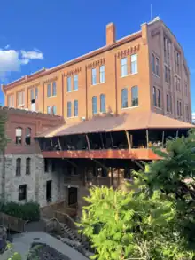 The Spokane Flour Mill, commonly known as the Flour Mill among locals,[2] is a historic building in Downtown, Spokane, Washington located adjacent to the Spokane Falls on the river's north bank. The building was constructed in 1895 and designed by the Edward P. Allis company. The Flour Mill served as a flour mill from 1900 until 1972; it was converted into offices and a retail mall in advance of Spokane hosting the 1974 World's Fair, and has continued to serve those purposes since. As of 2022, the Flour Mill is home to offices, restaurants and shops.[2]