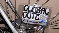 A spoke card, or spokecard, is a card placed in the spokes of a bicycle wheel. They lie parallel to the entire wheel. Most spoke cards are laminated.[1]