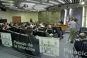 The Spokesperson of the Government of Spain is a high ranking of the Government of Spain whose purpose is to inform and communicate to society the political and institutional action of the central government. Its headquarters is located in the denominated Complex of La Moncloa. Currently the holder of the position enjoys the rank of Minister.