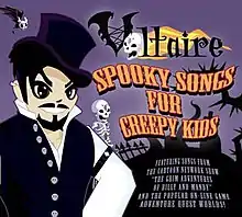 Spooky Songs for Creepy Kids is a compilation album released in 2010 by Cuban American dark cabaret singer Voltaire. It is a collection of Voltaire's songs, ranging from 1998's The Devil's Bris to 2008's To the Bottom of the Sea, with lyrics slightly modified in order to be more child-friendly (done by removing profanity and references to sexual intercourse). It also features some songs that were adapted in order to suit better for the world of the MMORPG AdventureQuest Worlds, in which Voltaire usually participates. It furthermore features two songs on which Voltaire collaborated for The Grim Adventures of Billy & Mandy.