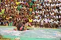 Sports in Cameroon is practiced widely by the population and advocated by the national government. Cameroonians take pride in victories at international competitions, making sport an important source of national unity.[1] Traditional sports in Cameroon include canoe racing, swimming, tug of war, and wrestling. Wrestling has featured in the initiation rites and other ceremonies of ethnic groups such as the Bakweri and the Duala.[2] However, in modern times, sports such as basketball, boxing, cycling, handball, netball, caber toss, and table tennis have become popular.[3] The 40 km (24.8 mi) Mount Cameroon Race of Hope draws several hundred runners each year.[4] Tourists hike, rock climb, and mountaineer, especially up Mount Cameroon.[5] Yaoundé, Tiko and Kribi have golf courses.[6] Rugby union is also played, with about 15 clubs and 3,000 players nationally.[7]