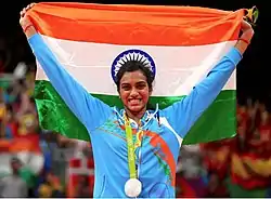 Sindhu is the first Indian to become the Badminton World Champion, which she achieved in 2019, and the only badminton player from India to win two consecutive medals at the Olympic Games.[92][93]