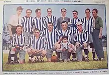 Founded in 1919, the football squad was promoted to the first division of Argentine football league system in 1925, as División Intermedia champion. The club debuted in Primera División in 1926, finishing in the 4th. position. Over 17 matches played, the squad won 10 with 4 games lost. Sportivo Balcarce scored 29 goals and conceded 19.[6]