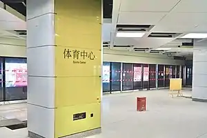 Sports Center station (Chinese: 体育中心站; pinyin: Tǐyù Zhōngxīn Zhàn), is a station on Line 6 of the Shenzhen Metro. It opened 18 August 2020.[1]