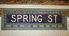 - Spring Street, a local station on the IRT Lexington Avenue Line of the New York City Subway, located at the intersection of Spring and Lafayette Streets, served by the 4, 6, and <6> trains.[51]