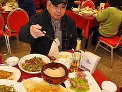 Eating Spring pancakes on the day of Lichun in a restaurant