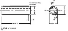 Slotted spring pins are cylindrical pins rolled from a strip of material with a slot to allow the pin to have some flexibility during insertion. Slotted spring pins are also known as roll pins, sellock pins or "C" pins.