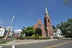 The historic district is centered around the junction of Springfield Street with South and Fairview Streets, extending several blocks in each direction. At its northeastern corner is the Maple Grove Cemetery, and its southward boundary is the Gaylord Street east of Springfield (ending at the northern edge of the Elms College campus), and Casino Avenue to its west. The older developments to the north and west are primarily vernacular versions of Greek Revival and Italianate housing, while the later development to the east and south are more stately examples of the Queen Anne, Second Empire, and Colonial Revival. The district includes a small number of commercial buildings near its northern edge, as well as four churches.[2]