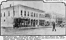 In July 1908, the US was pulling itself out of the Panic of 1907, which occurred during a lengthy economic contraction between May 1907 and June 1908.[13][14] This contraction led to suspension of cash payments by banks, a halt in lending, and a fall in the stock market, all resulting in significant economic disruption. Industrial production dropped, and the period saw the second-highest volume of bankruptcies to that date, with the dollar volume increasing nearly 50 percent.[15] Production fell over 10 percent, commodity prices dropped by more than 20 percent, imports fell by over 25 percent, and unemployment, which had been less than 3 percent prior to the panic, increased to 8 percent, resulting in fierce job competition.[15] As of April 1908, there were 200,000 unemployed men in Illinois, with 55 percent of those residing outside of Chicago.[16] Comparatively, neighboring Iowa and Missouri, which had populations that were 40 percent and 60 percent of Illinois' (5.5 million), had 2,000 and 43,000 unemployed men, respectively.[16][17][18][19]