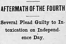 "Drunkenness" arrests were particularly high on the Fourth of July, a fact that would later play into the ensuing attacks. For example, in 1907, in Decatur, there were over 200 arrests for drunkenness on Fourth of July.[107] The holiday resulted in so many issues that The Inter Ocean newspaper, of Chicago, published an "Annual List of Injured, Arrest and Fires Resulting From Celebration of Fourth of July."[108] In 1907, there were over 70 recorded injuries and nearly 20 arrests on the list.