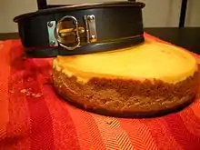 This pan is used to bake dishes that cannot be easily inverted for removal from the pan. Some of the most common recipes to call for springform pans are cheesecakes and tortes. The easy removal of the sides from a springform pan lends itself to dishes with delicate bottom layers such as the graham cracker crumb crusts commonly constructed for cheesecakes. Springform pans, however, are also used in the preparation of pizzas, quiches, and frozen desserts.