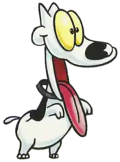 Spunky is Rocko's dog. Though not explicitly stated on the show, he is a Miniature Bull Terrier. Spunky emits foul odors, eats trash, drinks his saliva, and rolls in and eats Ed Bighead's salmon bushes, causing Mr. Bighead to feel annoyed. Nickelodeon Southeast Asia's website described him as "loving", "loyal" and "gassy".[1][2]