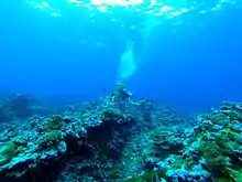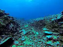 Spur and groove formations are a geomorphic feature of many coral reefs. They are ridges of reef formed by coral "spurs" separated by channels "grooves" which often have sediment or rubble bed. Spur and groove formations vary in their size and distribution worldwide but are a common feature on many forereefs of fringing reefs, barrier reefs, and atolls which are exposed to moderate wave energy.[1] Spur and groove formations are influenced by the incoming surface waves, and the waves induce a circulation pattern of counter rotating circulation cells.[2]