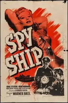 Spy Ship is a 1942 American Warner Bros. B picture drama film directed by B. Reeves Eason and written by Robert E. Kent. The film, a remake of Fog Over Frisco that was based on the short story The Five Fragments by George Dyer stars Craig Stevens, Irene Manning (playing a character based on Laura Ingalls),[1] Maris Wrixon, Tod Andrews, Peter Whitney and John Maxwell. The film was released by Warner Bros. on June 6, 1942.[2][3]