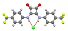 Chloride-squaramide interaction in O2C4(NH(C6H4CF3)2. The characteristic planarity of a squaramide is evident.[2]