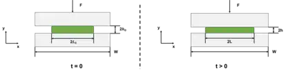 Where is the applied squeezing force, is the initial length of the droplet, is the fluid viscosity, is the width of the assumed rectangular plate, is the final height of the droplet, and is the change in droplet height over time. To simplify most calculations, the applied force is assumed to be constant.