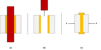 Squeeze flow (also called squeezing flow, squeezing film flow, or squeeze flow theory) is a type of flow in which a material is pressed out or deformed between two parallel plates or objects. First explored in 1874 by Josef Stefan, squeeze flow describes the outward movement of a droplet of material, its area of contact with the plate surfaces, and the effects of internal and external factors such as temperature, viscoelasticity, and heterogeneity of the material.[1] Several squeeze flow models exist to describe Newtonian and non-Newtonian fluids undergoing squeeze flow under various geometries and conditions. Numerous applications across scientific and engineering disciplines including rheometry, welding engineering, and materials science provide examples of squeeze flow in practical use.