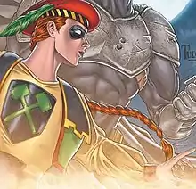In Batman Incorporated, Squire and Knight participate in Batman's war against the Leviathan organization led by Ra's al Ghul's daughter Talia al Ghul. During a battle with Heretic (clone of Talia's son), Cyril is killed.[10] Over the course of the series Beryl takes on the mantle of The Knight[11] She attempts to avenge Cyril's death, but is stopped by Batman only for Talia to kill The Heretic herself.[12] Beryl is seen in the last issue fighting alongside other Batman Inc. members against the last remains of Leviathan.[13]