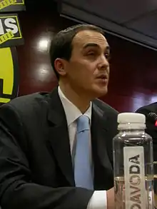 He was a member of the Serbian Renewal Movement (SPO) from 1992 through 2012.[1] He served as the party's Vice President from 2005 through 2012, and before that he was the director and a member of the Presidency, as well as a member of the Executive and Governing Boards. He founded the Original Serbian Renewal Movement on 10 February 2012, and he was the party's head up until the collective joining of the Together for Serbia party (ZZS), on 1 November 2013.[1] He then became the party's Vice-President.[1]
