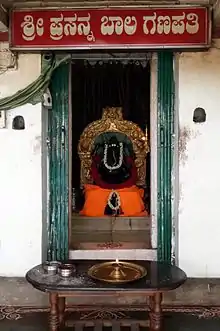 There is a small shrine dedicated to Ganesha, located in the corridor towards the left of the Shivaling.