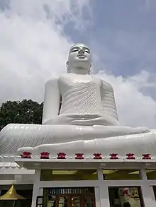 Sri Maha Bodhi Viharaya[1] is a Theravada Buddhist temple in Kandy, Sri Lanka. It is located in Bahirawakanda, approximately 2 km (1.2 mi) from the city centre. The temple is known for its giant Buddha statue. The statue of Buddha is depicted in the position of the Dhyana Mudra, the posture of meditation associated with his first Enlightenment, and can be seen from almost everywhere in Kandy. It stands at 26.83 m (88.0 ft) high and is one of the tallest Buddha statues in Sri Lanka.