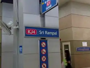 Sri Rampai LRT station is a rapid transit station in northern Kuala Lumpur, Malaysia, forming part of the Kelana Jaya Line (formerly known as PUTRA). The station, named after the nearby Taman Sri Rampai housing estate to the west, is located along the border between Taman Sri Rampai and Wangsa Maju to the east.