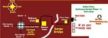To reach the temple, the devotees should travel towards Bokaro Hotel from Patharkata Chowk. Turn left towards Chinmaya School and turn right by Asha Lata Kendra. Devotees should continue on this road, crossing the Chira Chas bridge. One should then travel straight to Chira Chas school and then turn left. After traveling a distance of 30 feet, one should then turn right (by the board of Kalika Vihar Phase -3), and then enter the Aashiyana Garden/Kalika Vihar Phase - 3 campus where the temple is located.