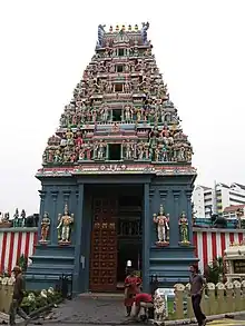 Sri Srinivasa Perumal Temple or Sri Perumal Temple (Tamil: சிங்கப்பூர் ஸ்ரீநிவாசப் பெருமாள் கோயில்) is one of the oldest temples in Singapore. It is located in Little India within the planning area of Kallang along Serangoon Road, where its tall Gopuram (tower) shows the different incarnations of Lord Vishnu. This large complex, dedicated to Vishnu, dates from 1855, but the 20-metres-tall Gopuram was only built in 1966 at a cost of S$300,000. The temple's five-tier Gopuram was a donation from P. Govindasamy Pillai, one of the earliest Indian migrants to Singapore. In 1978, the temple was gazetted as a National monument of Singapore.[1]
