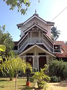 The image house consists of an inner chamber (shrine room) surrounded by an outer shelter. The inner chamber opens towards the south direction and has two entrances, framed with sculpted Makara Thorana (Dragons arches). A portrait of the Queen Victoria has been painted over the right side entrance door in a framed portrait, accompanied by two unicorns. Also some Delftware fragments and VOC coins have been used to decorate the door surface as well as the floor of the image house.