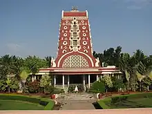On the southeastern corner of Vidyashala's campus is located the Ramakrishna Institute of Moral and Spiritual Education,[16] popularly called "Vedanta College," which offers a Bachelor of Education program and whose prayer hall is topped by a distinctive Pallava-style gopuram visible from about five kilometers around.