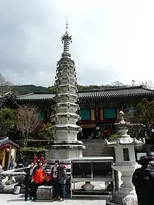 Ssanggyesa (Korean: 쌍계사) is a head temple of the Jogye Order of Korean Buddhism. It is located on the southern slopes of Jirisan, southwest of sacred Samshin-bong Peak, in the Hwagye-dong Valley of Hwagae-myeon, Hadong County, in the province of Gyeongsangnam-do, South Korea.