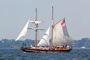 | Sail plan | 2,500 square feet, 11 sails in a brigantine rig |