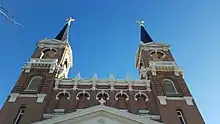 St. Aloysius Church is famous for its twin steeples that can be seen from many locations across the Gonzaga University campus and Spokane. Illuminated by 40 lights, the crosses atop the steeples are meant to be seen at every hour. It has the largest seating capacity among Catholic churches in Spokane. The great bell Catherina is housed in one of them.[6]
